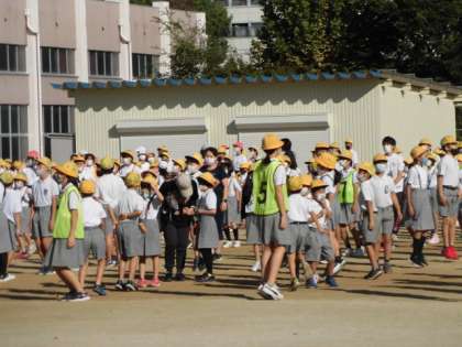 さわやかな秋晴れの朝、スマイル集会を行いました。