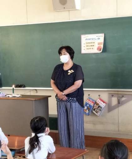 鶴見おはなしサークル(でんでんむし)の方によるお話会が、1年生と2年生の教室で行われました。子どもたちも熱心にお話を聞いていました。