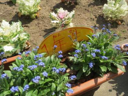 横田小学校では、学年ごとに世話するプランターを決め、児童が立て札を手づくりしてくれたそうです。