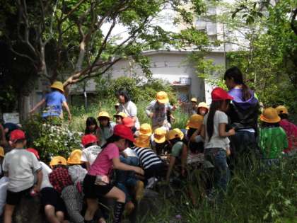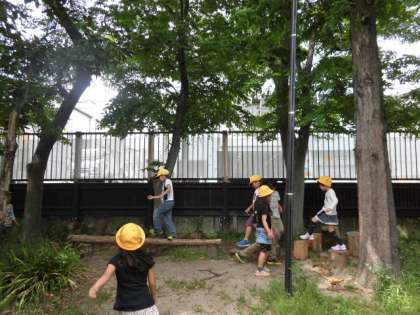 いろんな木の実を拾ってきて「これは何?」。あげはの幼虫の入った飼育かごをさげてきて「ミカンの木はどこ?」。えの森マップを見ながら「ドングリの木ってどれ?」。質問の嵐です。ひとつひとつ答えていると、あっという間に昼休みは終わりです。また明日・・・。