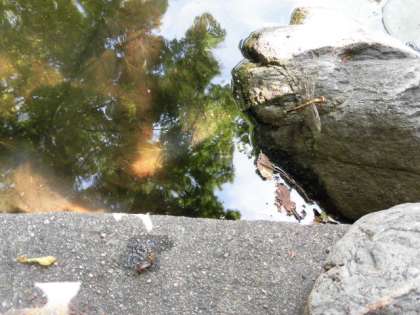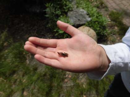 羽化したばかりのトンボが、少しずつ、少しずつ、羽を動かし、アシを動かし、石を登ってきます。みんな息を凝らして、その様子を見守りました。