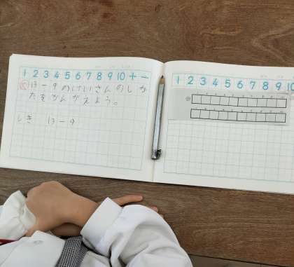 繰り下がりのあるひき算です。難しくなってきましたが、がんばっています。