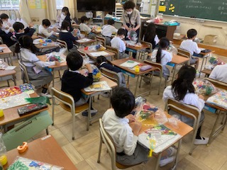 図工の学習で「ひかりのくにのなかまたち」を作成しています。