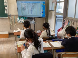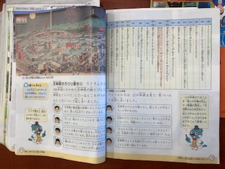 社会科で年表等の資料を活用し、天神祭りのうつり変わりについて学習しています。