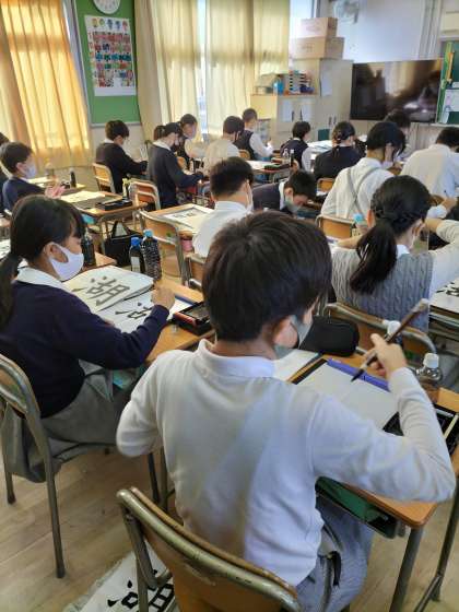習字の学習です。普段、元気で明るい6年生の子どもたちですが、集中してていねいに書いていました。