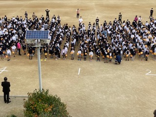 1年生にとっても小学校生活初めての児童朝会でした。全学年に紹介された1年生は、約1000人の全校児童を見て、とても驚いた様子でした。