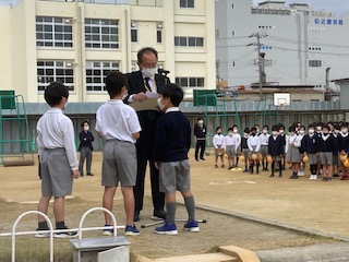 また、図工作品の入賞者とキックベースボール、ソフトボールチームの代表者に入賞の表彰が行われました。