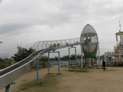 花園中央公園では、短い時間でしたがラグビーボール型の遊具などで遊ぶことができました。