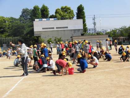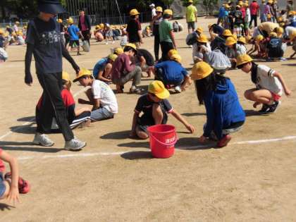 小さい石も見落とさないように、地面をよく見て拾っていました。