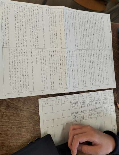「大造じいさんとがん」のお話です。大造じいさんとがんの残雪との知恵比べややりとりを読み深めています。