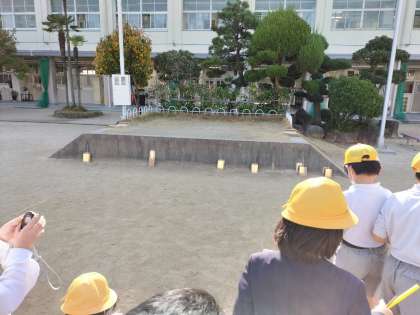 「光のせいしつ」の学習です。鏡で太陽の光を集めて温度を上げる実験をしています。うまく温度は上がったでしょうか?
