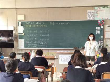 整数を分数で表す方法について学習しています。まちがえやすいところもありますが、じっくりと考えて取り組んでいます。