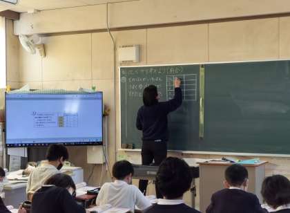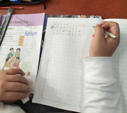 「比べ方を調べよう」という単元です。割合の学習で、なかなか難しい内容です。5年生の算数は難しい内容が続きますが、みんな頑張って、学習に取り組んでいます。