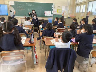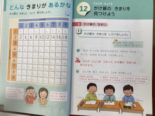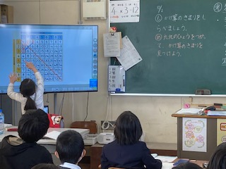九九の表から見つけ出したかけ算の決まりを発表しています。