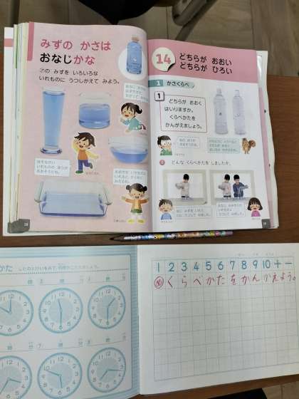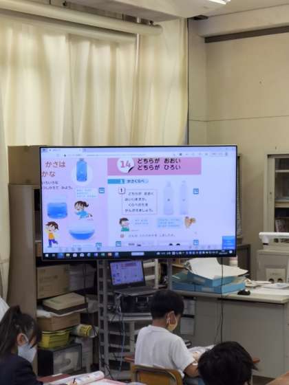 いろいろなもの量やかさや広さを比べます。今日は水のかさを比べます。