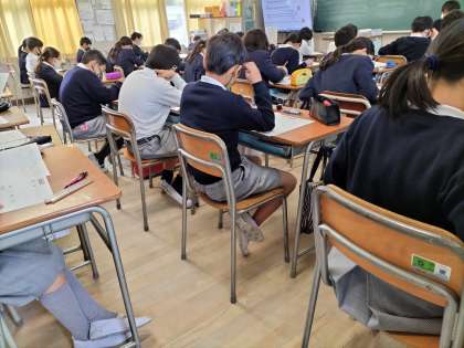 今日は算数、理科、英語の3教科です。みんな真剣に取り組んでいます。