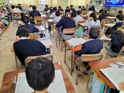 3・4年生は算数と理科の2教科です。こちらもみんな時間ぎりぎりまでがんばっています。