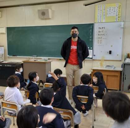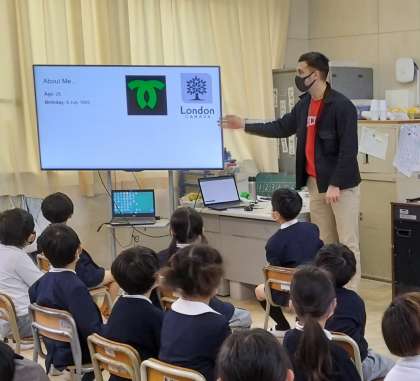 今日はC-NETの先生と外国語の学習です。少し緊張しながらも手をあげ大きな声で、お話をしていました。