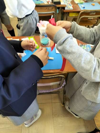 楽しそうにつくりながら、おいしそうなパフェができあがってきました。