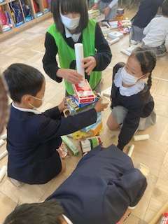 お店めぐりのスマイル隊は、リーダーを中心に、指示を聞きルールを守り、助け合って行動できました。いろいろなお店を回って楽しみ、笑顔いっぱいの子どもたちでした。