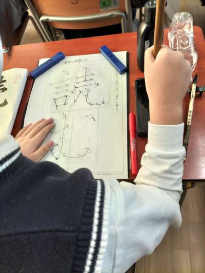 習字の学習です。漢字と仮名の大きさやバランスに気を付けながらていねいに書きました。