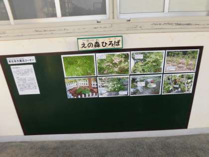 理科室の前に、えの森用の掲示板ができました。「えのもりプロジェクト委員会」で企画し、管理作業員さんが、廃材を利用して手づくりしてくれました。