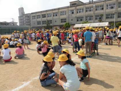 司会の児童がいう言葉の数分の人数を集めて輪になります。