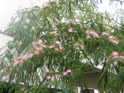 昼休みのえの森開放で、いつも「えの森マップ」片手にやってくる1年生たちに「ネムノキが咲いたよ」と案内すると、「ほんまや」「絵と一緒や」「きれい〜」と、感嘆の声を上げていました。