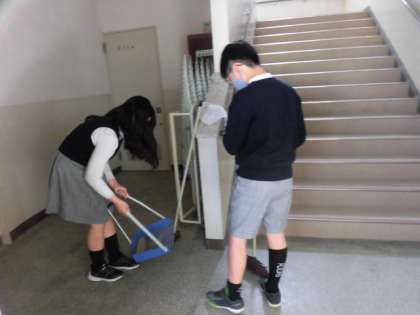 新6年生が講堂の準備や校内の清掃、1年生の教室の準備を行いました。