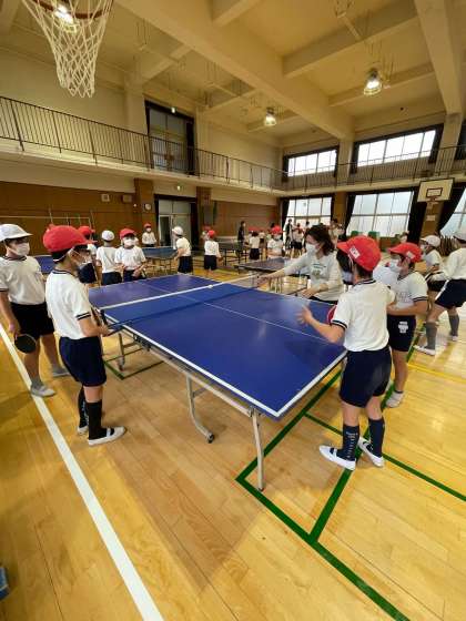 卓球クラブはルールを教えてもらいながら、初めての卓球に挑戦しました。なかなかラケットに当たらないながらも楽しむことができました。