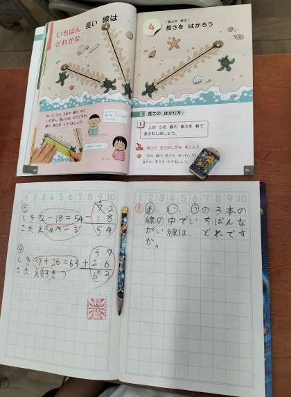 長さについての学習が始まりました。センチメートル、メートルなどの単位も学習します。