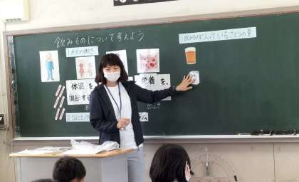 飲み物について学習しています。暑い時期にたくさん水分をとりますが、砂糖のとりすぎには注意しないといけません。