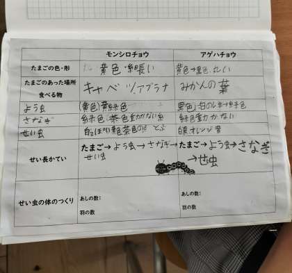 アゲハチョウとモンシロチョウを観察したことをまとめています。