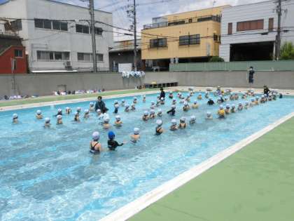 先生のお話をしっかり聞いて、いざ、プールの中へ!!