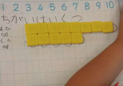 「ちがい」を見つけるために 図に表したりブロックで確かめたりします。
