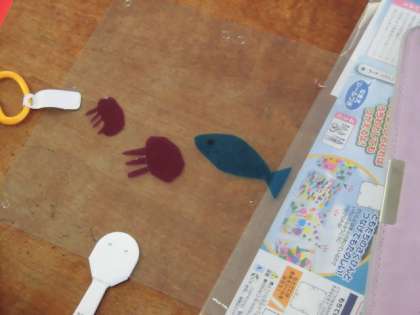 デザイン画を描いて、それを見ながらはさみでセロハンシートをちょきちょき