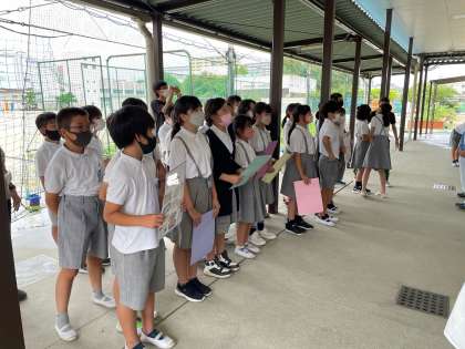暑い日も寒い日も子ども達のために、毎日おいしい給食を作ってくださいました調理員さんに、榎本小学校を代表して給食委員会の児童が、感謝のお手紙と一緒にお礼の言葉を伝えました。