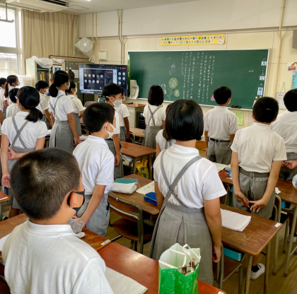 学校に子どもたちの元気いっぱいの声が返ってきました。