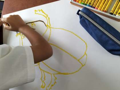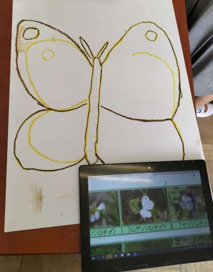 昆虫の絵を描いています。理科でも昆虫について学習しています。