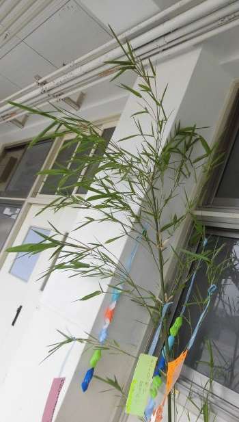教室の前に、えの森から切ってきたササを飾っている学級があります。(もちろん、元気に伸びすぎて、竹林からはみだしていたものを切りました。)昨日のうちに切り出しておいてよかったですね。