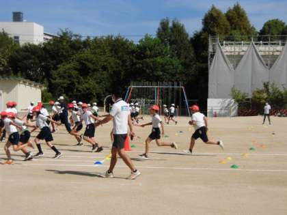 講師の先生方に、陸上競技を通して走る楽しさや基本の動作について学びました。
