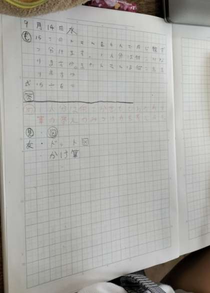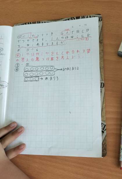 あまりのある割り算の学習です。