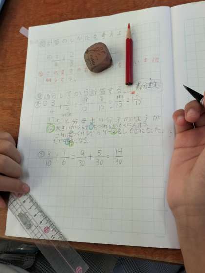 異分母分数のたし算の学習です。