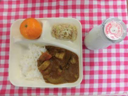 平成26年度の学校給食献立コンクール優秀賞献立をもとに作成された献立です。食欲の落ちる夏でもカレーは食べやすく、冷凍みかんはカレーによく合う組み合わせです。