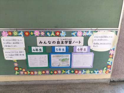 自主学習ノートの一部を、みんなが見ることができるように掲示しています。