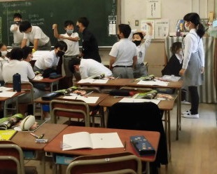 体の筋肉や関節がどのように動くか自分の体で調べます。