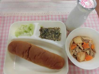 レーズンパン、牛乳 でした。