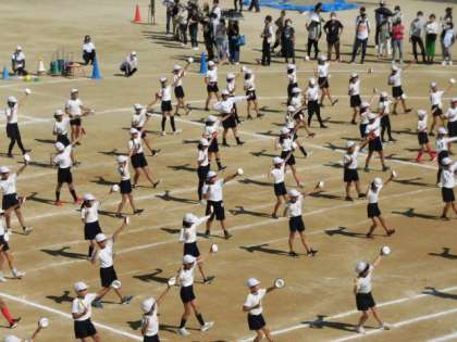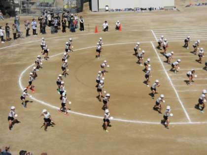 5年生の団体演技 「踊れ!ダイナミックに!〜沖縄県エイサー〜です。