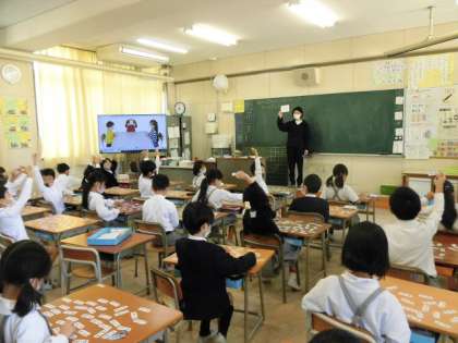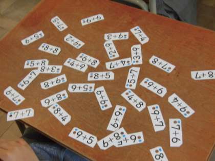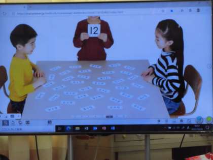 同じ答えになる式を見つける学習です。さて、次に先生が出す数のカードはなにかな?