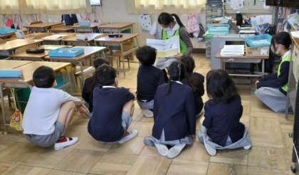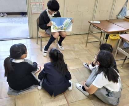 6年生一人一人が、たて割り班の下級生に本の読み聞かせをしました。今日に備えて練習する子もいました。本を読み終わると、低学年の子たちから拍手をもらったり、「ありがとう」と言ってもらったりしていました。優しくて頼もしい6年生です。